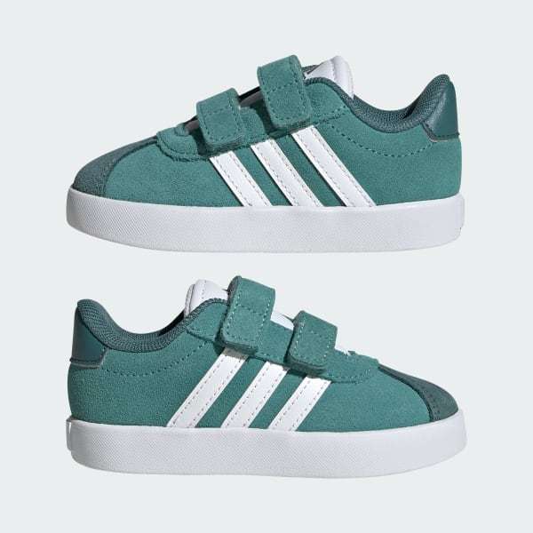 Adventure ready. These infant's adidas shoes have adjustable hook-and-loop straps so you can get them on and off in a flash, perfect for feet that don't want to stop moving. A synthetic upper, textile lining and vulcanized rubber outsole come together to keep their feet comfortable whether they're learning to stand, cruise or play.