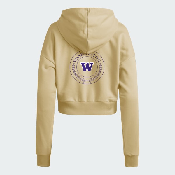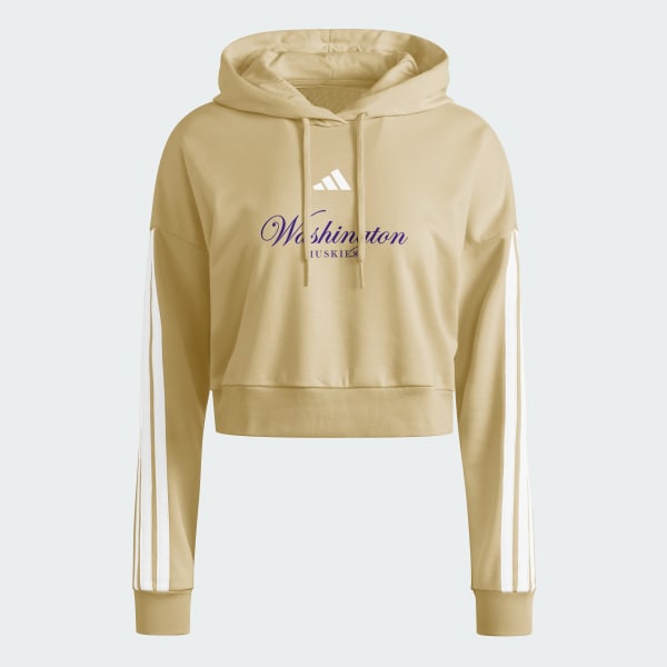 Let your love for your school shine in this adidas cropped hoodie. Made from a soft and durable cotton and polyester blend, this hoodie features Washington Huskies graphics on the front and back for a double dose of school spirit. 3-Stripes on the sleeves add the 3 Bar logo on the chest complete the look.