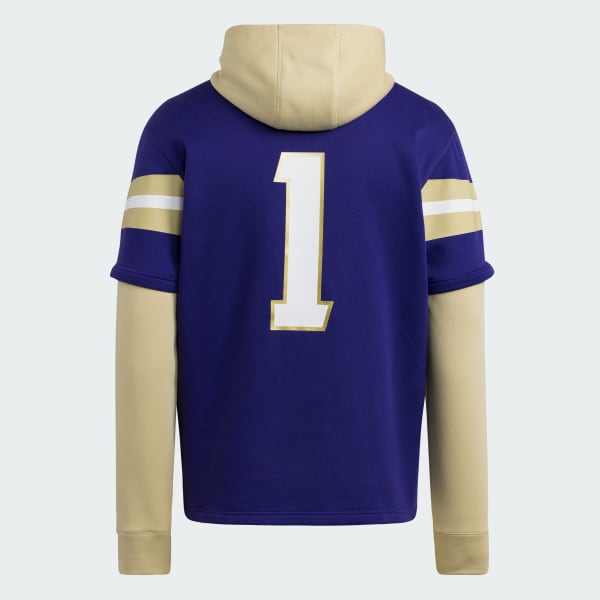 Rep your team with every move you make in this Washington hooded football jersey from adidas. It's built from soft fleece fabric that keeps you warm from pregame tailgating through every thrilling play. Bold Huskies graphics on the front and back leave no doubt where your loyalty lies.