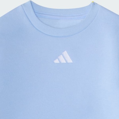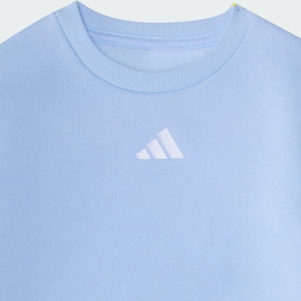 Introducing the 2-Piece Crewneck Sweatshirt and Joggers Small Logo Fleece Set. Designed for young explorers, it’s composed of a sweatshirt and matching sweatpants for everyday comfort and style.Both items are crafted from soft fleece material for a warm feel. The regular fit strikes a balance between loose and snug, making the set a reliable choice for their adventures, from playing in the park to weekend outings and lounging at home.The ribbed crewneck retains its shape as your child moves around, while the ribbed cuffs and hem help to keep the sweatshirt in place. Featuring a comfortable elastic waist and cuffs, the sweatpants are easy to slip on and off, making them hassle-free for parents and kids alike.Easy to care for, both items can be popped in the washing machine at the end of an active day. Let your child experience the rebellious optimism of adidas sportswear with this stylish set.
