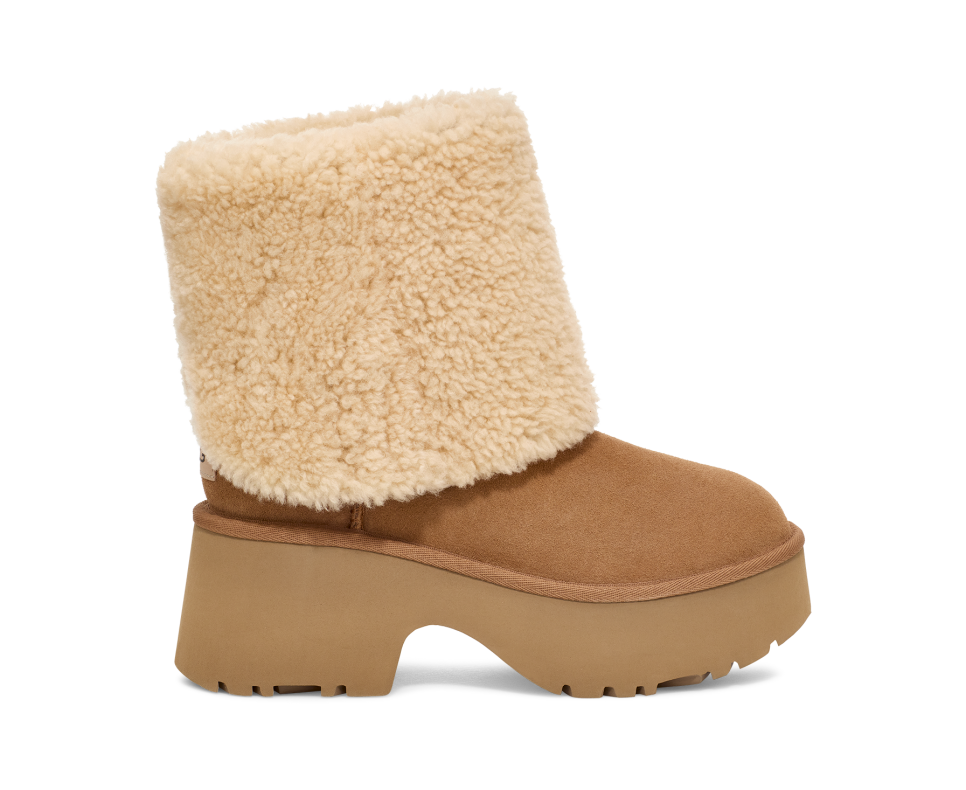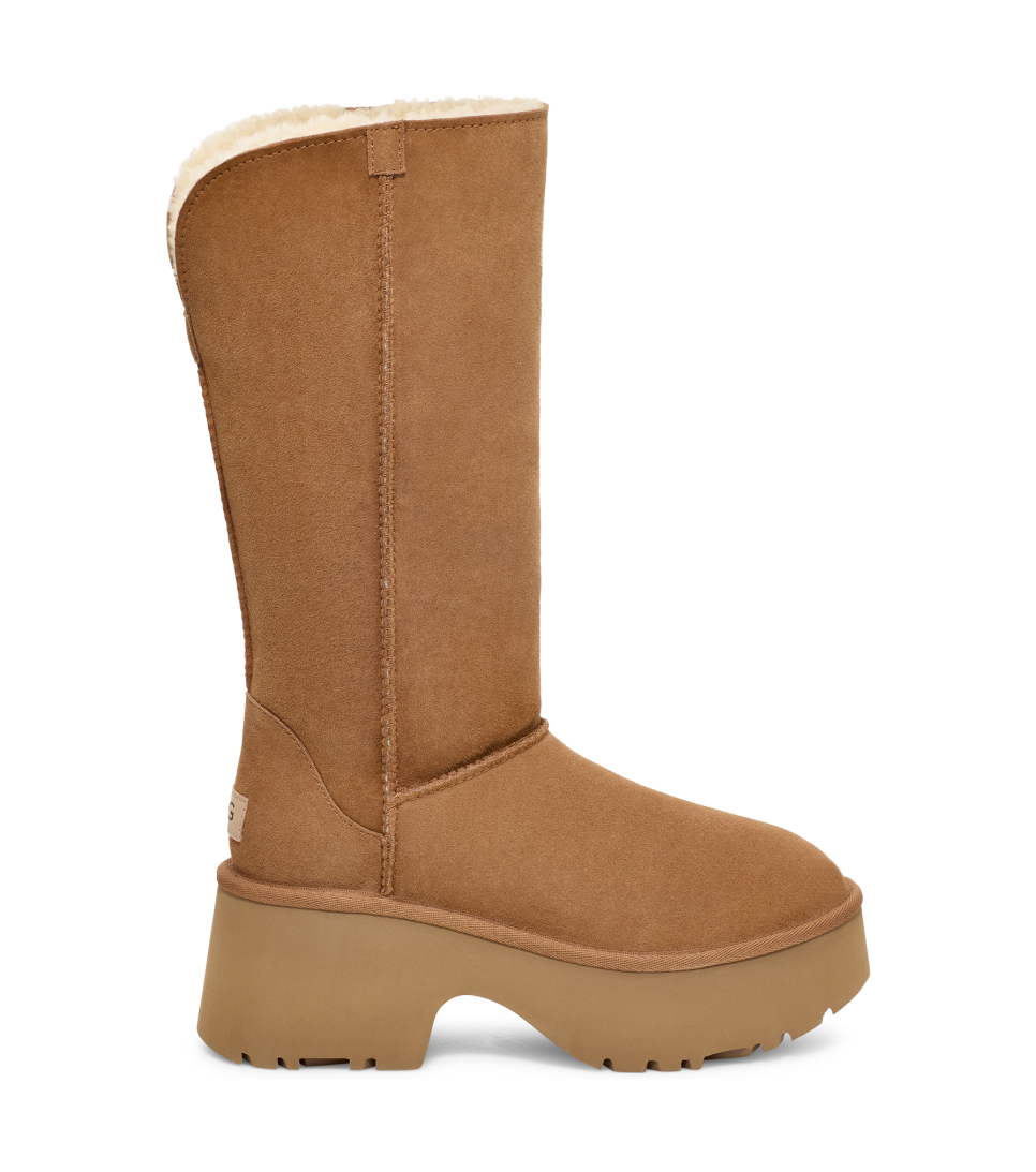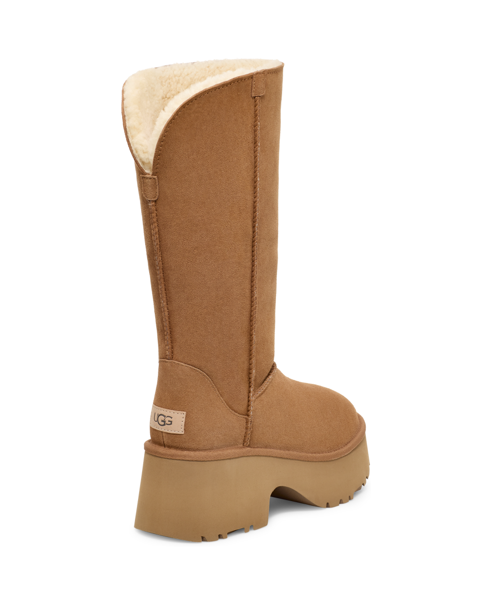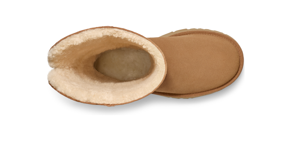 - 10mm curly sheepskin shaft lining, 17mm curly UGGplush™ 60% upcycled wool, 40% TENCEL™ Lyocell vamp lining