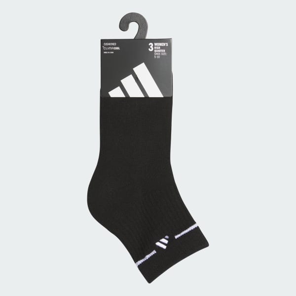 Take care of the feet that support your movement in these women's Cushioned Sport 3.0 3-Pack High Quarter Socks. Made with adidas CLIMACOOL, they wick away sweat and provide ventilation for lasting comfort. They're stretchy and soft, with knit-in cushioning and ribbed cuffs that fit snugly around your ankles.