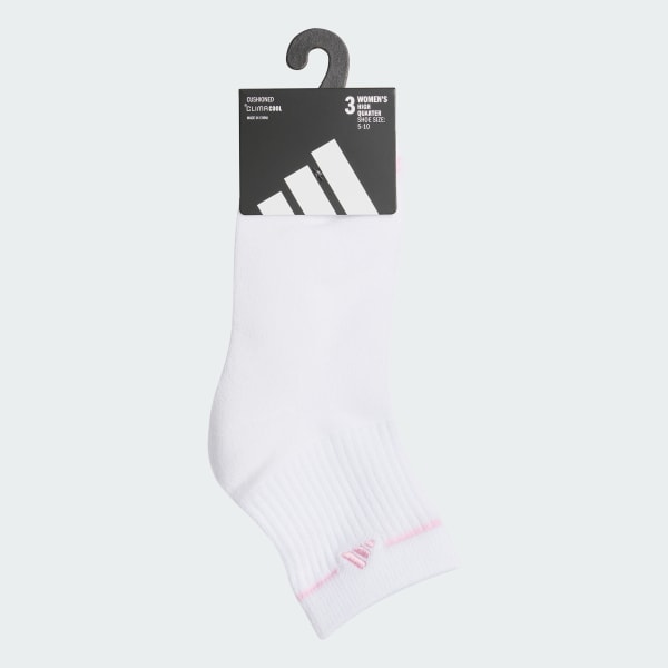 Take care of the feet that support your movement in these women's Cushioned Sport 3.0 3-Pack High Quarter Socks. Made with adidas CLIMACOOL, they wick away sweat and provide ventilation for lasting comfort. They're stretchy and soft, with knit-in cushioning and ribbed cuffs that fit snugly around your ankles.