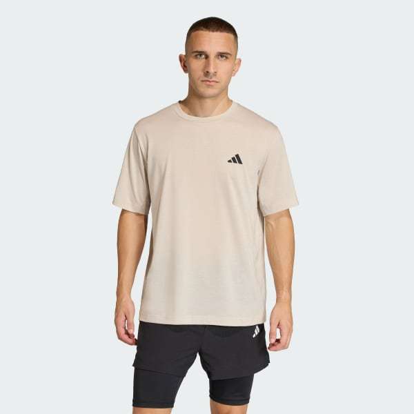 The Workout Essentials FeelReady T-Shirt is your go-to for training sessions. Designed for those who value both performance and aesthetic appeal, this t-shirt has you covered.Crafted in a regular fit, this t-shirt provides a comfortable and unrestricted feel, allowing you to move freely. The single-jersey fabric offers a soft cotton touch, making it a pleasure to wear, whether you're hitting the gym or going for a run.The integrated Climacool technology wicks and disperses sweat for a cool, dry, and distraction-free performance. Quick-drying materials work hard to help you feel comfortable, so you can feel fresh and stay focused on your session.adidas has engineered this garment to be a staple in your workout wardrobe, combining functionality with style. Embrace your training with confidence and let this t-shirt support you in unlocking your best self.