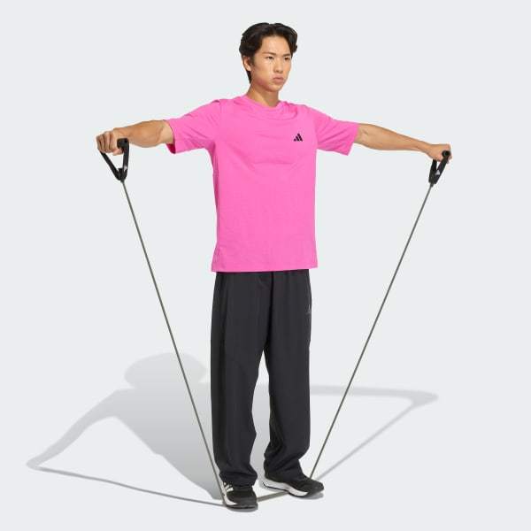 The Workout Essentials FeelReady T-Shirt is your go-to for training sessions. Designed for those who value both performance and aesthetic appeal, this t-shirt has you covered.Crafted in a regular fit, this t-shirt provides a comfortable and unrestricted feel, allowing you to move freely. The single-jersey fabric offers a soft cotton touch, making it a pleasure to wear, whether you're hitting the gym or going for a run.The integrated Climacool technology wicks and disperses sweat for a cool, dry, and distraction-free performance. Quick-drying materials work hard to help you feel comfortable, so you can feel fresh and stay focused on your session.adidas has engineered this garment to be a staple in your workout wardrobe, combining functionality with style. Embrace your training with confidence and let this t-shirt support you in unlocking your best self.