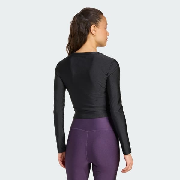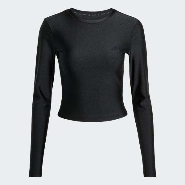 Make even the most grueling workouts sparkle in this long-sleeve training tee. This stylish top lets you transition seamlessly from studio session to holiday party. The soft, stretchy fabric hugs your body with a tight fit. adidas AEROREADY absorbs moisture to keep you dry and focused.