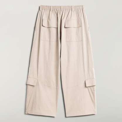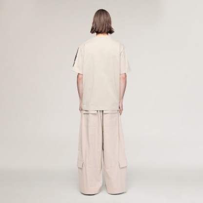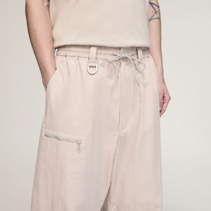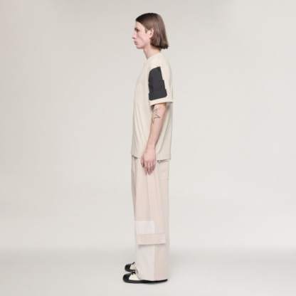 Oversized pants with mixed fabrics and cinched hems for a sharp, modern twist.