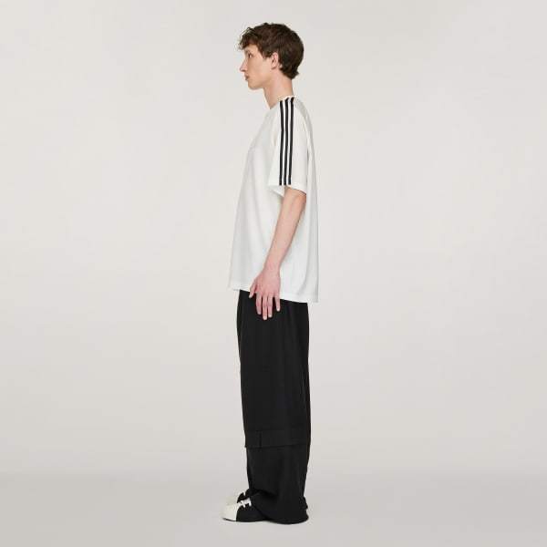 Simple yet complex, the Y-3 Short Sleeve Tee 3-Stripes is an everyday staple rooted in sport heritage. It features 3-Stripes partially made with wire so that you can play with the shape. Soft, slight-stretch fabric is a blend of lyocell, nylon and sheep's wool.