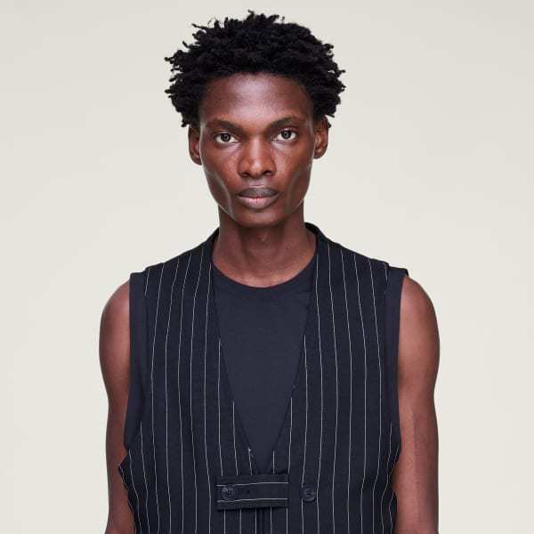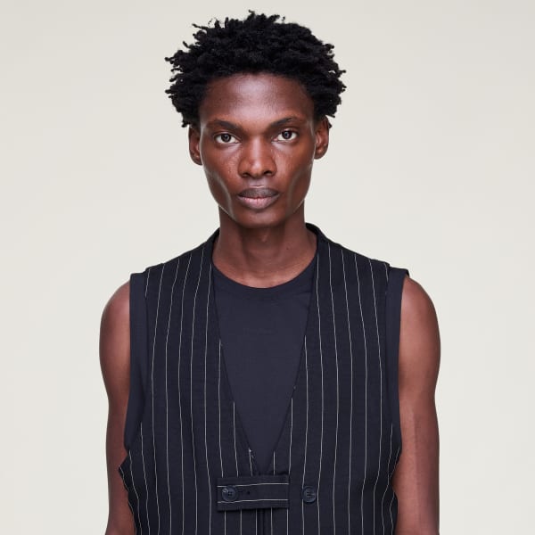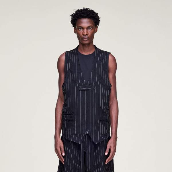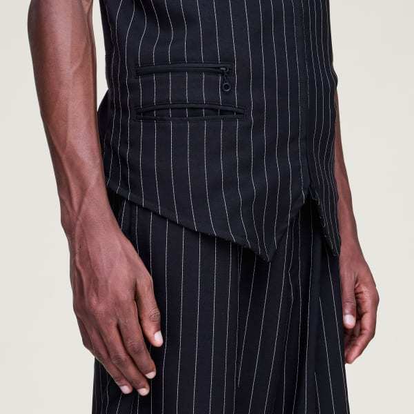 Discover the Y-3 Sport Uniform Pinstripe Tailored Vest, where form meets function. Crafted with meticulous attention to detail, this vest embodies the avant-garde design ethos of Yohji Yamamoto combined with adidas' history in sportswear.The vest's back panel is made from single jersey, offering a breathable feel. It features a collar, making it suitable for both casual outings and more formal occasions. The classic regular fit offers relaxed proportions that makes layering easy.The pinstripe design adds a subtle visual interest to the piece, while the heat transferred Y-3 logo brings the whole look together.