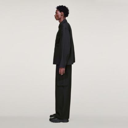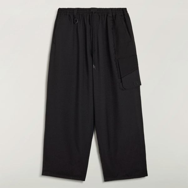 Introducing the Y-3 Sport Uniform Straight Pants. Inspired by adidas' history in sportswear and defined by Yohji Yamamoto's eye for unconventional fashion.Crafted from the washed crinkle twill fabric, these loose-fit cargo pants offer a slightly cropped silhouette. The two-layer hem construction, with a straight finished leg opening and an elasticized cuff underneath, provides a unique, layered look.The elasticized waistband, complete with a fly and zipper closure, is complemented by an integrated webbing tape belt with a fid-lock buckle, offering a secure and comfortable fit.The big flap cargo patch pockets on both sides, additional slip-in pockets, and two welt pockets at the back offer ample storage, making these cargo pants a functional, stylish choice.