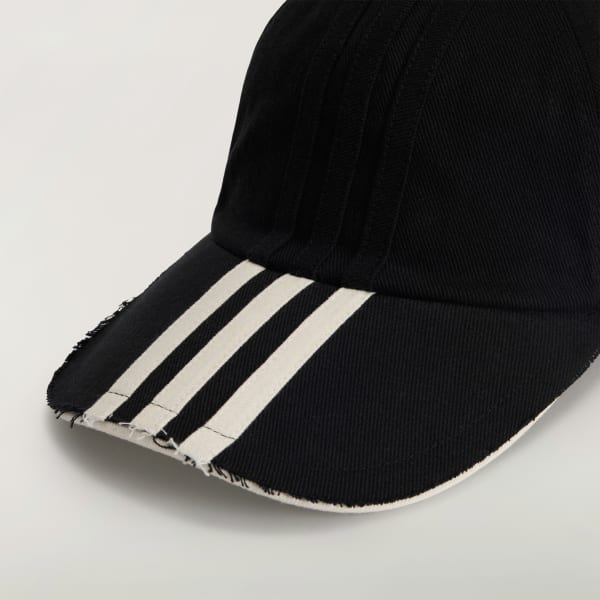 Introducing the Y-3 Stripes Cap, where style meets adidas' sports innovation. Crafted from durable twill fabric, the cap features a bold contrast on the brim with a distinctive 360-degree 3-Stripes execution, while the main body maintains a subtle, tonal look.Its curved brim with distressed edges on the top layer and a sharply contrasted underlayer offers an unexpected finish.The cap is completed with an embroidered Y-3 logo at the back, adding a signature touch to your look.