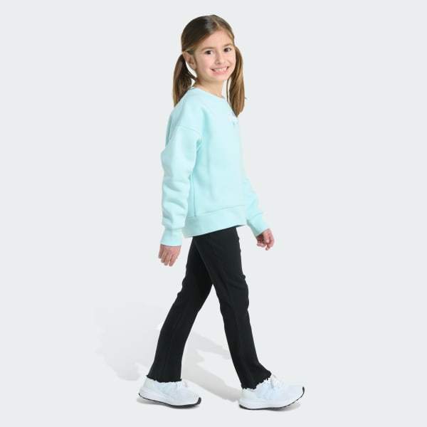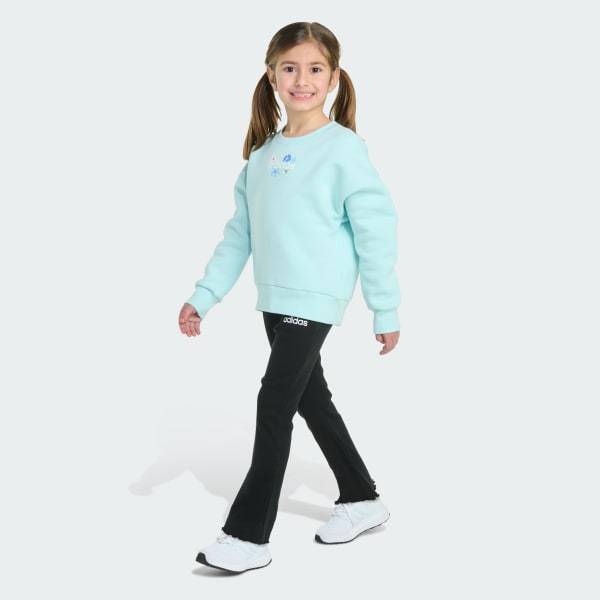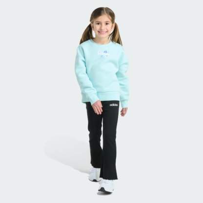 This girls' two-piece outfit has all the things. Florals, flared legs, and forever adidas details give her instant style and comfort. The fleece sweatshirt is extra cozy and warm. Soft fabric and a delicate lettuce hem seal the deal on the pants.