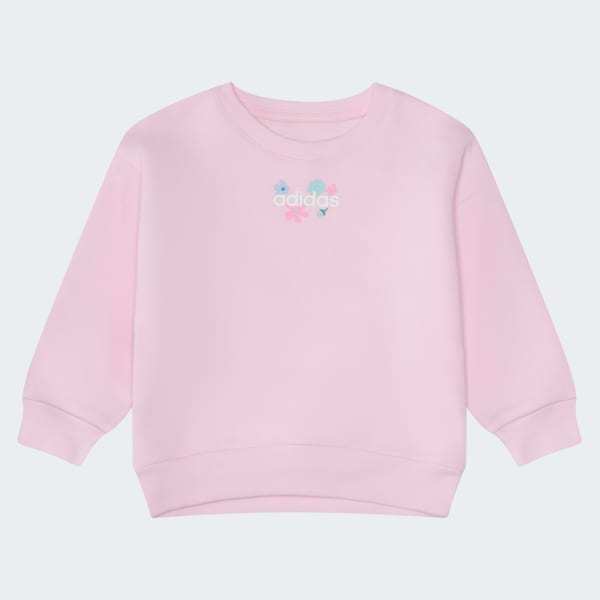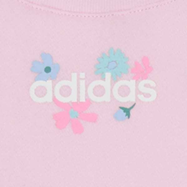 Introduce them to comfort and style with the Two-Piece Long Sleeve Crewneck Fleece Pullover and Ribbed Flare Pant Set. Wherever they are, that adidas graphic and floral design on the front of the pullover, and the lettuce-edge hems on the flared pants, can’t fail to catch the eye.The soft fleece sweatshirt features a ribbed crewneck, cuffs and hem for a snug fit that keeps the warmth in. The pants are crafted with an elastic waist and cuffs, bringing a secure fit through every wriggle. Trust adidas to deliver quality and style for your little one's wardrobe.