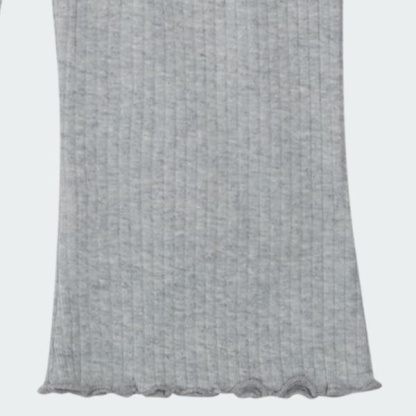 - Top: ribbed cuffs; bottoms: lettuce-edge hem