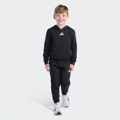 Everyday adventures are fun with the 2-Piece Long Sleeve Pullover Hoodie and Joggers Essential Small Logo Fleece Set. Designed to keep up with kids and their active lifestyle, the set comprising a long sleeve hoodie and sweatpants is a versatile choice for school, sports practice and weekend outings.Ribbed details on the cuffs and hem help to keep the hoodie in place, while the kangaroo pocket offers warmth for your child’s hands and storage for small items. The pants feature an elastic waist with drawstring for a secure, adjustable fit and comfort as they go about their day.Crafted from soft fleece material in a regular fit that strikes a balance between loose and snug, the set is a must-have for your youngster’s wardrobe. The design is rounded off by a bold adidas logo on the center chest and left thigh giving it a sporty edge.At the park, playing with friends or relaxing at home, your child will enjoy comfort and style with this set. Machine washable for easy care, it’s built for busy families and busy kids.