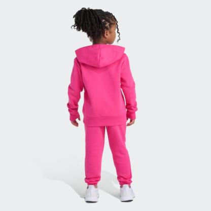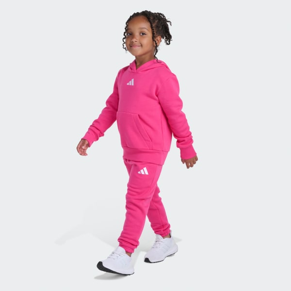 Introducing the 2-Piece Long Sleeve Pullover Hoodie and Joggers Essential Small Logo Set, designed for active kids who love to move. Comprising a cozy hoodie with matching sweatpants, the set offers a look that’s ready for school, playtime or weekend adventures.The hoodie features a kangaroo pocket on the front providing warmth for your child’s hands and practical storage for small items. The ribbed details on the cuffs and around the hem offer a stylish touch and help to keep the hoodie in place.Thanks to the sweatpants’ elastic waist with drawstring, your child can move around freely and adjust them as needed. The set is crafted from soft fleece material for a warm feel and in a regular fit that strikes a comfortable balance between loose and snug.An adidas logo on the center chest and left thigh add the final touches to the design. Easy to care for and machine washable, this set is built to keep up with your child’s activities and everyday life.