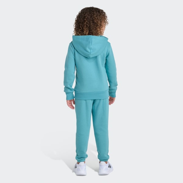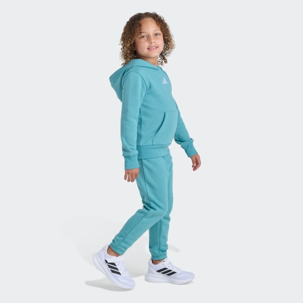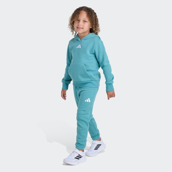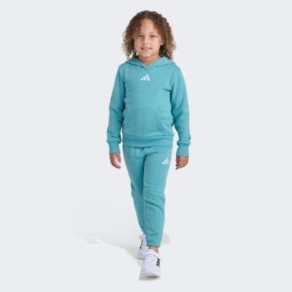 Introducing the 2-Piece Long Sleeve Pullover Hoodie and Joggers Essential Small Logo Set, designed for active kids who love to move. Comprising a cozy hoodie with matching sweatpants, the set offers a look that’s ready for school, playtime or weekend adventures.The hoodie features a kangaroo pocket on the front providing warmth for your child’s hands and practical storage for small items. The ribbed details on the cuffs and around the hem offer a stylish touch and help to keep the hoodie in place.Thanks to the sweatpants’ elastic waist with drawstring, your child can move around freely and adjust them as needed. The set is crafted from soft fleece material for a warm feel and in a regular fit that strikes a comfortable balance between loose and snug.An adidas logo on the center chest and left thigh add the final touches to the design. Easy to care for and machine washable, this set is built to keep up with your child’s activities and everyday life.