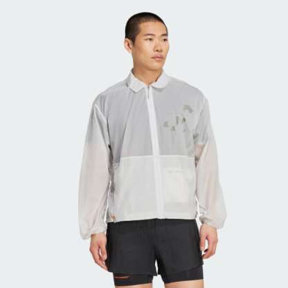 For the runners who will lace up any time and in any weather just to feel the freedom of movement. This adidas running coach jacket is part of a special collaboration with Mexican brand Hermanos Koumori. It helps battle wind chill so you can focus on the rhythm of your stride. And when the sun warms you up, it packs easily into its own pocket. Laser cut perforations keep air flowing and reflective details shine on low-light runs.