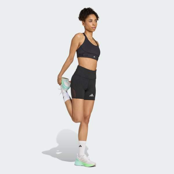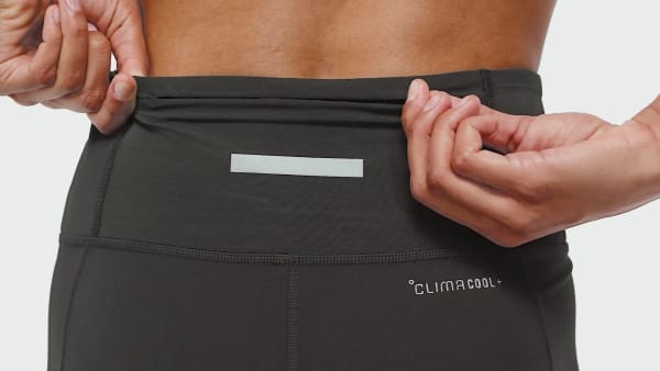 When the sun's high and your pace is relentless, these adidas running short leggings help you handle the heat. They're built with CLIMACOOL+, our best cooling innovation. A high-rise waist rests comfortably against your skin as you stride, and mesh inserts help to keep air flowing. You can store a phone or energy gels in the back zip pocket.CLIMACOOL+ helps you manage sweat with materials that wick and manage sweat quickly. Its fast-dry fibers give you a fresh-skin feel. Body-mapped sweat management supports targeted cooling. Superior engineering and advanced materials unite for a cool, dry and distraction free performance.