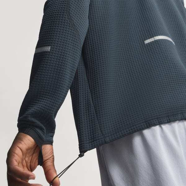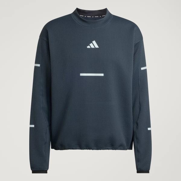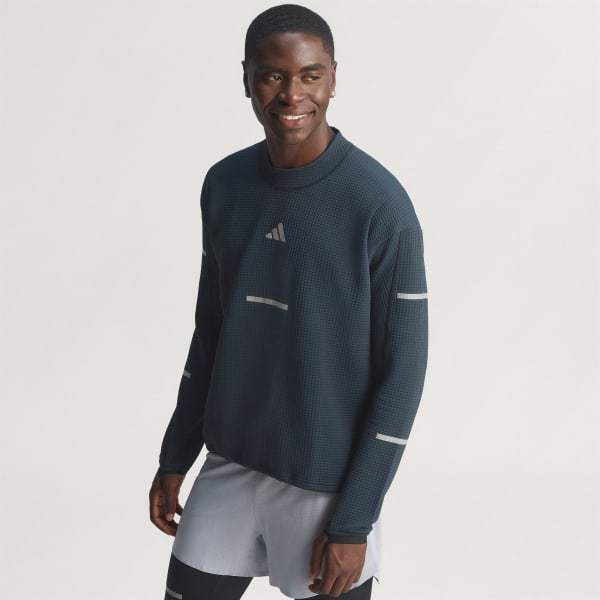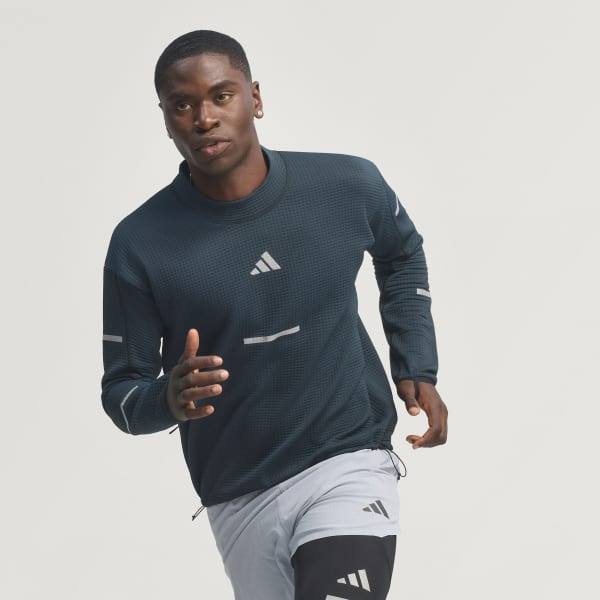 365 days of the year. Hot or cold. You lace up your shoes and get out there. On the cold days, this adidas running crewneck helps you stay comfortable. It's made with CLIMAWARM+ and is designed to layer. The fabric's waffle structure helps channel air to your skin to help regulate body temperature, while thumbholes help you keep your hands warm.CLIMAWARM+ advanced insulation provides superior engineering with advanced materials that unite for warm, dry and focused performance. Insulating materials trap warmth for optimal body temperature.