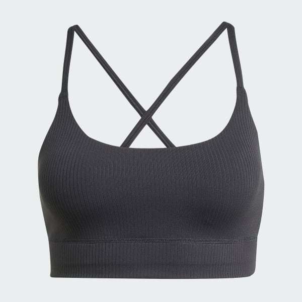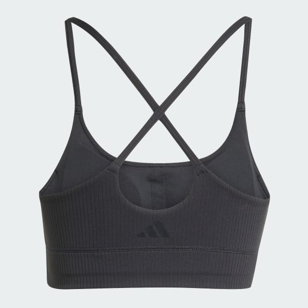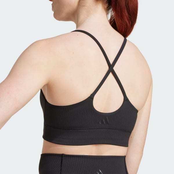 Designed for your low-impact workouts, this adidas workout bra keeps you feeling relaxed and comfortable. The buttery-soft fabric glides smoothly against your skin, and removable pads provide light coverage and support. The longline style stays securely in place so you can open out into warrior pose or hold plank with confidence