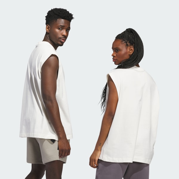 Power up your game in this adidas sleeveless basketball tee. The loose fit and sleeveless design give your arms full range of motion so you can get your shots off with ease. The large adidas Basketball 3 Bar logo on the chest shows your brand loyalty on the court. This tee was made using UNITEFIT — an all-gender fit system that was created with a spectrum of sizes, genders and forms in mind.