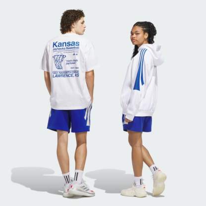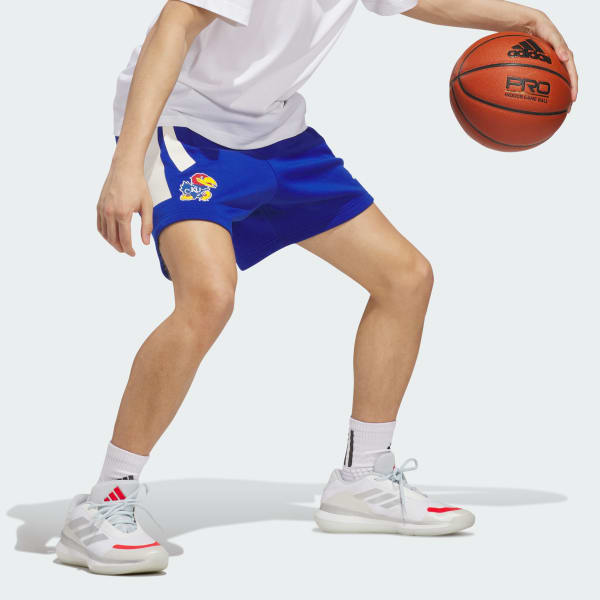 Hit the court with confidence in these adidas Basketball Spacer Shorts. Built for fans of the Kansas University Jayhawks, they show off a team crest and a 3 Bar Logo just above the hem.They offer a loose fit that allows for unrestricted movement, ensuring you can make every play count. The doubleknit fabric provides a comfortable feel to keep you in the zone, whether you're practicing your jump shot or leading your team to victory on the court.Show your fandom and maximize your performance in shorts that are as dedicated to the game as you are.