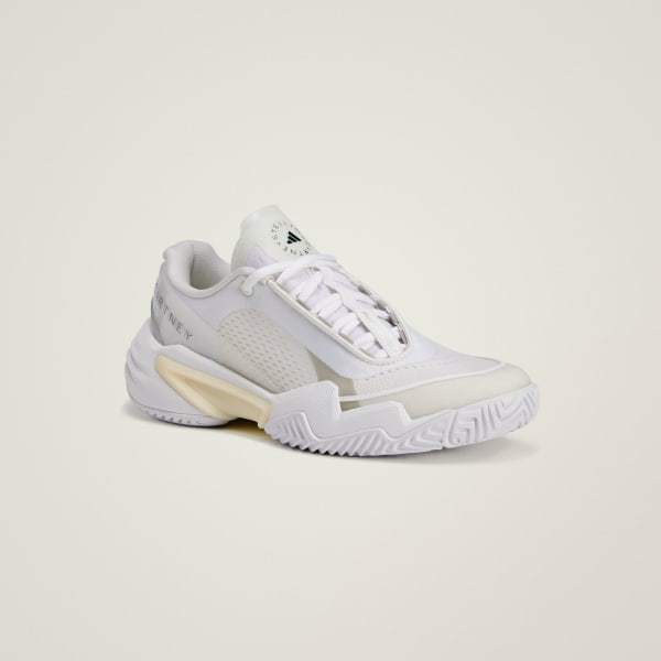 Take control of the court in these adidas by Stella McCartney Barricade tennis shoes, crafted with a two-layered mesh construction. Torsion System provides match-turning stability, while the asymmetric lacing locks you in for quick cuts and slides. A REPETITOR midsole adds support and smooth transitions from one step to the next. We only label products as made with vegan materials if they were previously created with leather, suede or down.This vegan product also features at least 20% recycled materials.