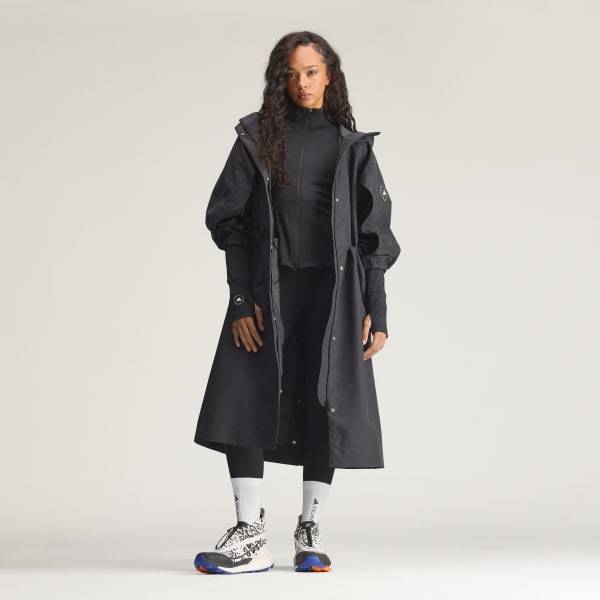The adidas by Stella McCartney Heavyweight Parka is designed for those who like to face the elements in style. A masterpiece of fashion and functionality, this parka is built for an active lifestyle.The heavyweight construction shields you from light rain to help keep you dry and comfortable. The oversized sleeves with cape detail add a touch of elegance, while the bungee at the waist allows for a custom fit, adapting to your every move.Crafted with precision, the parka features elasticized cuffs and a slit at the back for freedom of movement. It has a three-piece hood and adjustable drawstrings to suit your needs, while the covered snap button placket completes the sleek look.Whether you're exploring the city or heading into the wild, this parka won’t let you down. Offering a fusion of high-performance features and elevated design, you can let your adventures unfold with confidence and style.