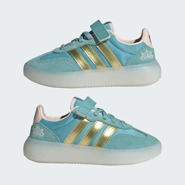 Add a touch of magic to kids' everyday adventures with the adidas Disney Barreda Decode shoes. Adding a new twist to a classic look, they offer durability and a premium feel.The nylon base upper features a striking Disney graphic on the strap end. These shoes also boast suede material overlays and a non-marking rubber cupsole for impressive grip on street surfaces.The elastic laces and top strap closure are great for carefree play. adidas branding on the tongue and quarter 3-Stripes encourage kids to show off their bold style, whatever activity they're taking part in with friends.