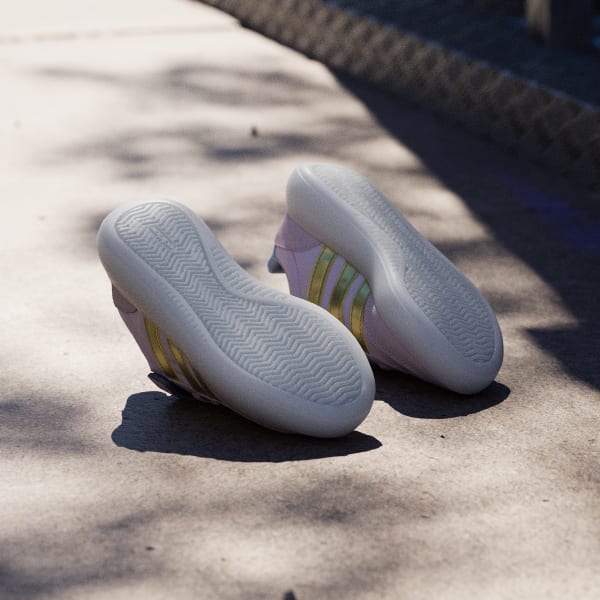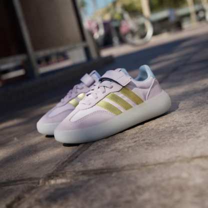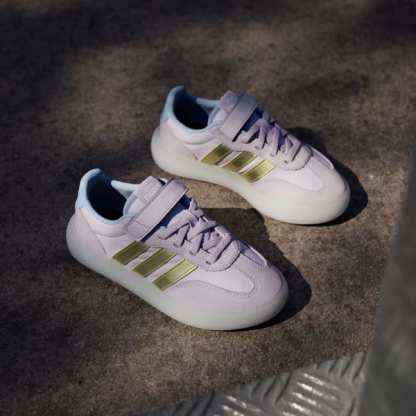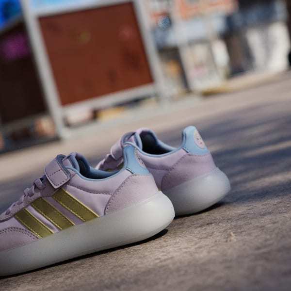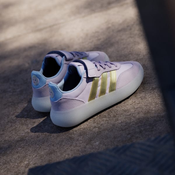 The adidas Disney Frozen Barreda Decode Shoes bring a touch of magic to everyday adventures. With the beloved character’s graphic on the strap, these shoes are great for little ones who love the Frozen story. The contemporary T-toe combined with modern cupsole tooling creates a unique blend of classic style with a fresh twist. The textile upper with suede overlays offers durability and comfort for active play.The elastic laces and hook-and-loop closure provide a secure fit and make it easy for kids to manage their shoes. The non-marking rubber cupsole provides grip and traction, suited for street and play activities. Whether they're on the playground or seeking new adventures, these shoes are designed to keep up with their energetic lifestyle. Let your children play with style and confidence in adidas.