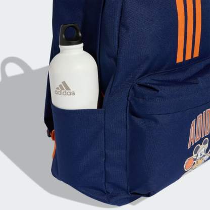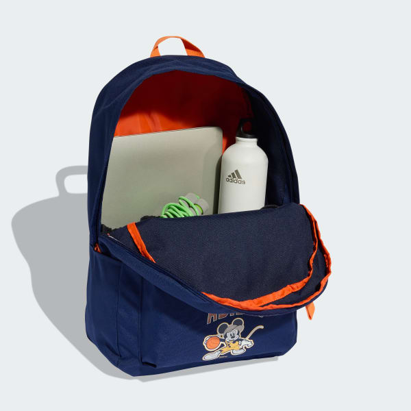 The adidas Disney Mickey Mouse Backpack is designed to bring joy and functionality to your child's everyday adventures. With its playful Mickey Mouse graphics, this backpack captures the vibrant energy of stadiums and the passion of sports fans. Crafted from a durable plain weave fabric, this backpack is built to withstand the rigors of daily use. The padded and adjustable straps provide comfort during wear, making it suitable for school, playdates or family outings. Featuring a zipper closure, the backpack offers easy access to its spacious interior that can be used for storing books, toys and snacks. Celebrate the spirit of sports and the magic of Disney with this adidas backpack. It's a delightful addition to any child's accessory collection.