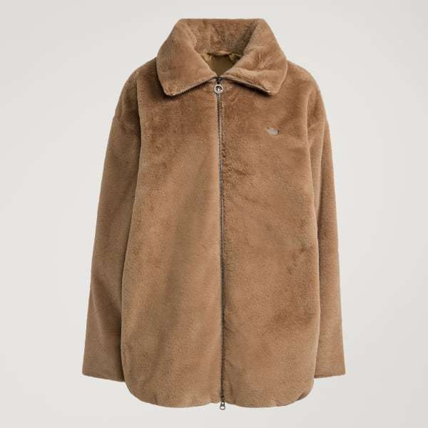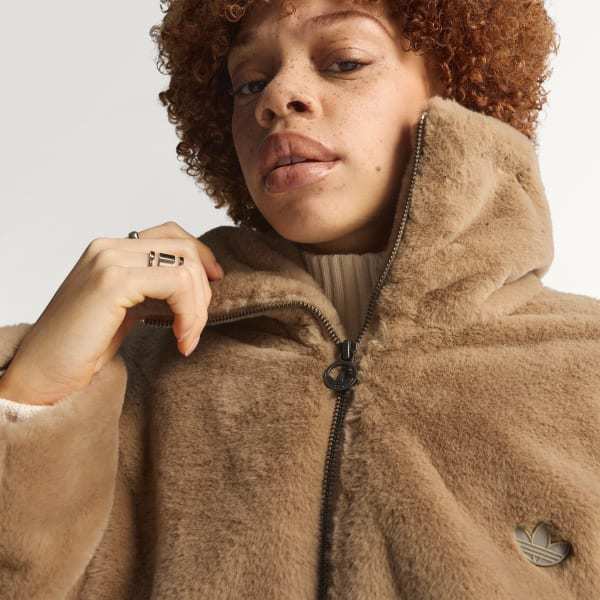 Made of plush faux fur with a slightly oversized fit, this adidas jacket is all about attitude. Ribbed cuffs and a subtle Trefoil add sporty touches that keep the look firmly rooted in street style. Rock it with jeans and your favorite kicks for an off-duty look that's as confident as you are.