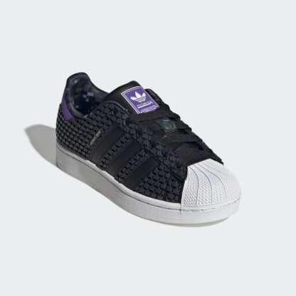 The Superstar returns, complete with a Minecraft makeover. 'Spawned' to appeal to young creatives, and keep their feet happy too, this shoe transforms an iconic silhouette into a future style legend.The standout design feature is the pixelated upper. Next to the signature shell toe, it's a match made in Minecraft heaven. You'll find the familiar block pattern on the sockliner, a lace charm and other Minecraft touches. Even the adidas Trefoil has had the Minecraft treatment.There’s plenty for parents too. Heel and tongue padding keeps active feet feeling good. And fear not, the shell toe and rubber outsole will take more than a Creeper to destroy. If your kids love Minecraft, and you value quality and comfort, it's time to consider adding these shoes to your inventory.