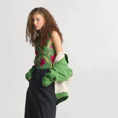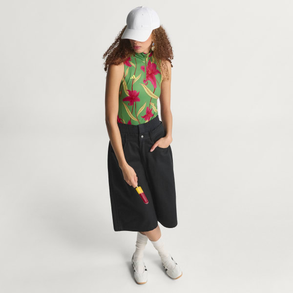 The adidas x FARM Rio Bodysuit fuses the vibrant floral energy of the Brazilian brand with adidas sportswear heritage for a look that combines couture with performance.With its loose fit and high neck with button closure, this piece balances style and comfort. The bodysuit delivers a soft, smooth skin feel thanks to its interlock fabric, that handles the challenge of training with ease.The piece is signed off with the iconic adidas 3 Bar Logo for a confident declaration of your style, combining FARM Rio’s dynamic spirit with unmistakable Originals DNA.