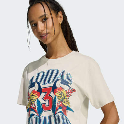 The adidas x Farm Rio Graphic T-Shirt is a vibrant expression of style and creativity. Part of the “Courts of Culture” collection, this tee captures the dynamic spirit of basketball courts, reimagined for sportswear and training.Crafted from single jersey fabric, the tee offers a comfortable and durable fit. Its loose fit provides ease and freedom in every movement. Its bold graphics, inspired by colorful murals and street art, add a modern edge to your look.Whether you're hitting the gym or enjoying a casual day out, this tee is designed to keep you feeling confident and stylish. With Farm Rio's tropical aesthetics seamlessly blended with adidas' iconic DNA, this tee makes for a statement piece in your wardrobe.