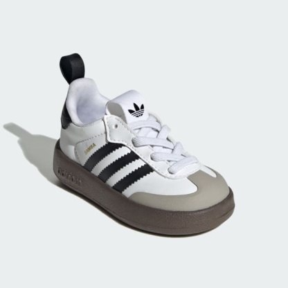 For young explorers and future fashionistas. These toddlers' adidas Originals sneakers are built with soft Adifom cushioning. The shoes feature a stretchy upper that makes them easy to get on and off. The classic Samba design with 3-Stripes makes a sporty statement, while the grippy Trefoil-patterned outsole keeps them grounded.
