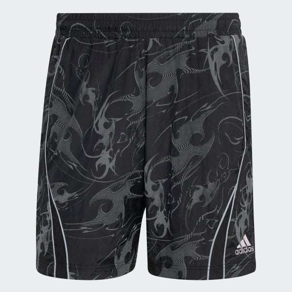 Adilenium Season 4 from adidas Originals dives into the archives to reimagine Teamgeist, the iconic soccer line that revolutionized the pitch. These woven shorts have an allover tribal print that catches the light with its reflective effect. The Teamgeist cut line is done with reflective piping detail and ripstop fabric insets. An embroidered adidas Badge of Sport logo finishes the look.
