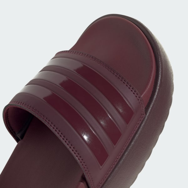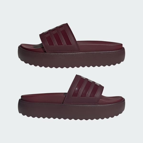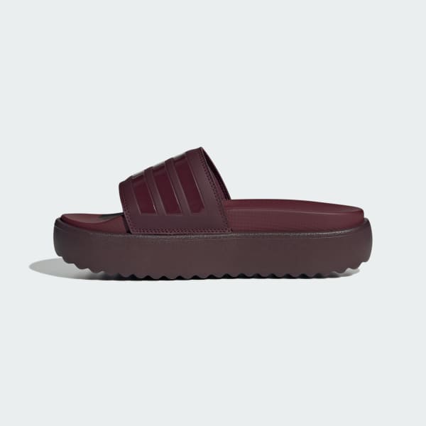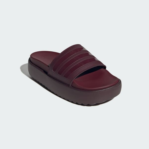 The coolest way to show off your pedicure. These adidas platform slides look at home by the pool and in the city with 3-Stripes wrapped around the smooth bandage uppers. These sandals have a contoured footbed and a cushioned EVA outsole for maximum comfort.
