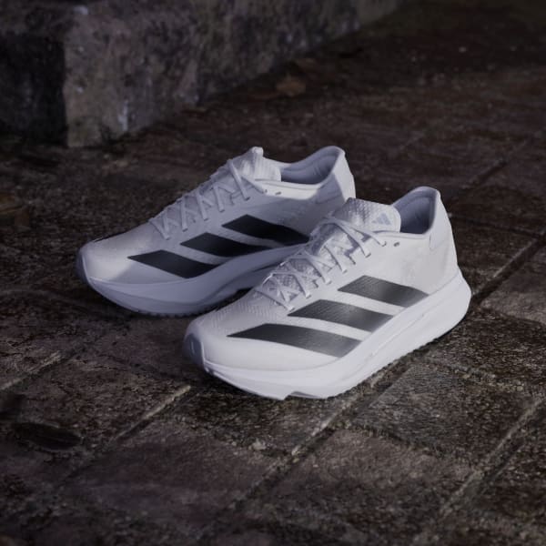 If you're looking to get faster and go farther, these adidas running shoes are what you want on your feet. They're light and fast, with a breathable mesh upper to help keep your feet cool plus a Lightstrike and Lightstrike Pro midsole that provides long-lasting energy return. As you chase your goals, a grippy rubber outsole helps keep your strides confident.