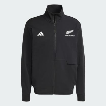 Stand shoulder-to-shoulder with the mighty All Blacks. This adidas rugby jacket is the one New Zealand's stars zip up before they enter the field of play. Smooth, stretchy doubleknit fabric keeps every move comfortable so you stay focused. An iconic silver fern logo on the chest shows you're part of the team.