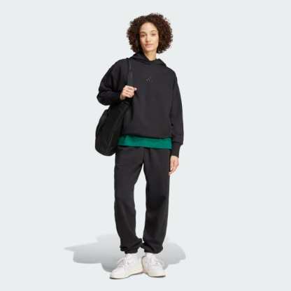 Cozy comfort awaits in this adidas hoodie. Made with a brushed back cotton-fleece fabric that's indulgently soft, it keeps the chill at bay whether you're lounging at home or out running weekend errands. Drop shoulders and a roomy fit ensure maximum ease of movement. Ribbed cuffs elevate the look while sealing in warmth. A kangaroo pocket discreetly adds function so your keys and phone are always within reach. Embroidered details let your sporty style shine through. Flip up the generous hood for extra cosiness on grey days.