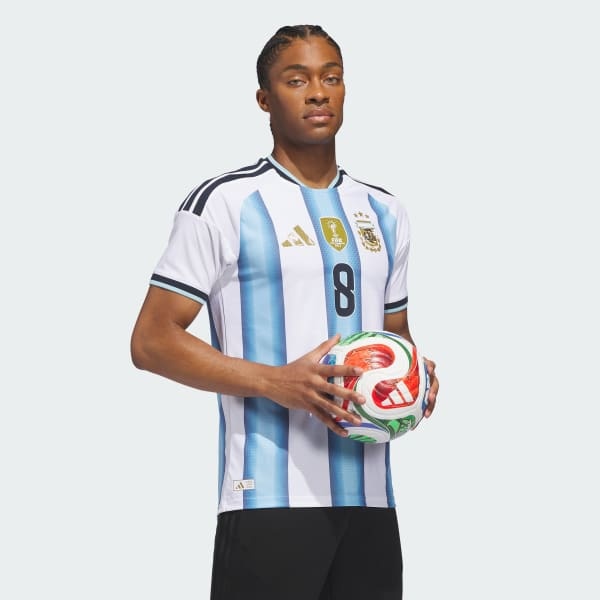 Designed to celebrate Argentina’s world champion legacy, the Argentina 26 Home Authentic Jersey features a striking gradient inspired by the kits worn in the nation’s three World Cup victories. Engineered for elite performance, the slim fit delivers a streamlined silhouette that moves with you through every sprint and tackle. Advanced cooling. Climacool+ technology delivers superior engineering and advanced materials for a cool, dry and distraction-free performance.Bold 3-Stripes and a seasonal collar bring a modern edge to a classic look, while the federation’s founding year adds authentic details for true fans.Whether you’re chasing glory in a local league or cheering from the stands, this jersey is built for those who live and breathe soccer. Experience the energy of champions with adidas.