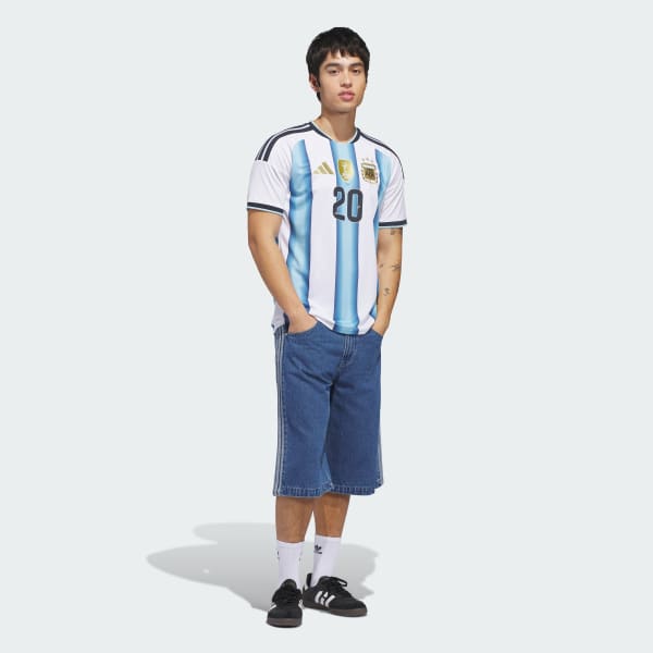 Designed to honor the nation’s soccer heritage, the Argentina 26 Home Jersey celebrates the team’s third star and showcases a bold gradient inspired by past World Cup victories. The seasonal collar and iconic 3-Stripes deliver a fresh twist on a classic look that’s made for match days and everyday style. Engineered for performance, the slim fit and knit construction offer a streamlined feel that moves with you. Climacool breathable materials aid cooling for optimal comfort.With embroidered details and a nod to Argentina’s foundation year, this jersey is more than gear—it’s a symbol of pride. Wear soccer history with this jersey from adidas.