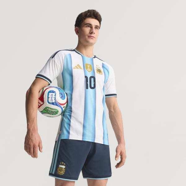 The Argentina 26 Home Authentic Jersey unites soccer heritage with forward-thinking design. Marking the first appearance of Argentina's third World Cup winners' star, it honors the team's legacy and fearless identity.Crafted in knit jacquard with a slim, performance fit, it's built to move with precision. Climacool+ materials wick and manage sweat quickly, helping you stay cool, dry, and comfortable.This adidas jersey carries the spirit of champions into every moment—whether you're battling on the field or celebrating the victory. It's a symbol of legacy that is made to inspire.