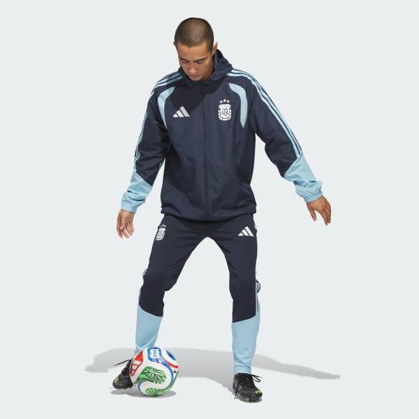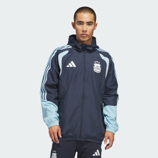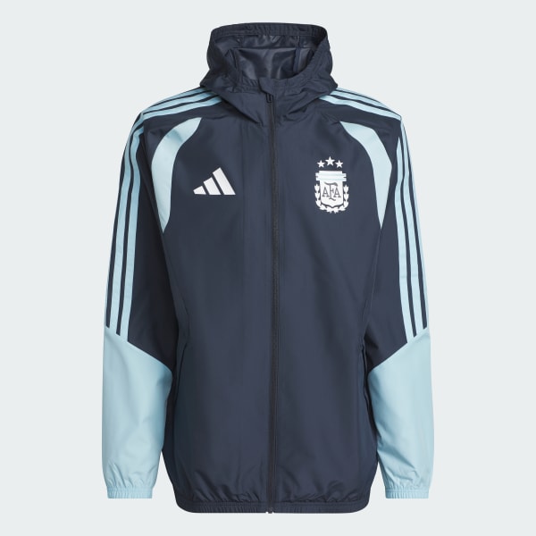 Built for changing conditions, the Argentina 26 Tiro All Weather jacket brings adidas football design to the pitch—so you're ready for the day, no matter what the skies throw at you.The jacket is designed for performance and features adidas Clima365 technology, incorporating a series of hightech fabrics, which help you feel ready for sport.Windproof and water-repellent, it helps keep the wind out and repels the rain. A packable hood adds versatility, while the full zipper makes layering easy and secure.The regular fit allows room to move, with adjustable details for a clean, confident silhouette. Finished with the 3-Stripes and AFA crest, this is all-weather gear with football identity at its core.