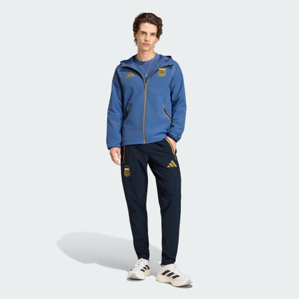 The Argentina Tiro Travel Full Zip windbreaker merges soccer fit with modern function. Inspired by performance silhouettes, it brings a clean, technical edge to streetwear rooted in sport.Made from durable plain weave fabric, it features a slim profile that layers easily. The full zipper and adjustable hood offer flexibility in shifting conditions—designed to move with you.Ergonomic cutlines support natural mobility, while adidas branding and the AFA crest bring signature identity. A versatile piece built to handle travel and changeable weather in style.