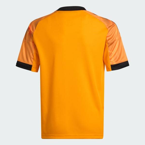 The Eternal City's protector, Jupiter, takes center-stage on this juniors' AS Roma soccer jersey from adidas. Bisected by a lightning bolt sent from the heavens, the dynamic design will keep supporters standing out on match day. Moisture-managing AEROREADY and soft fabric ensure it feels divine to pull on.