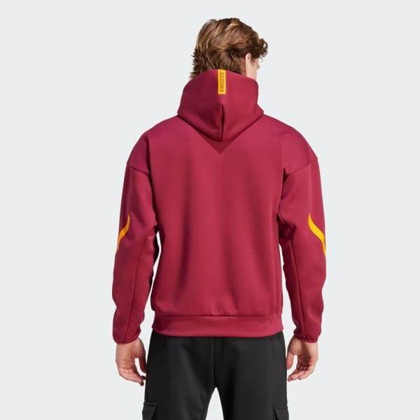 Whether you're watching AS Roma or waiting to hit the field yourself, this ADIDAS Z.N.E. jacket helps you block out distractions and get in the zone. Soft doubleknit fabric keeps you comfortable and covered so you throw all focus on your soccer. Team colors, a badge and a club graphic on the hood ensure everyone knows the source of your confidence.