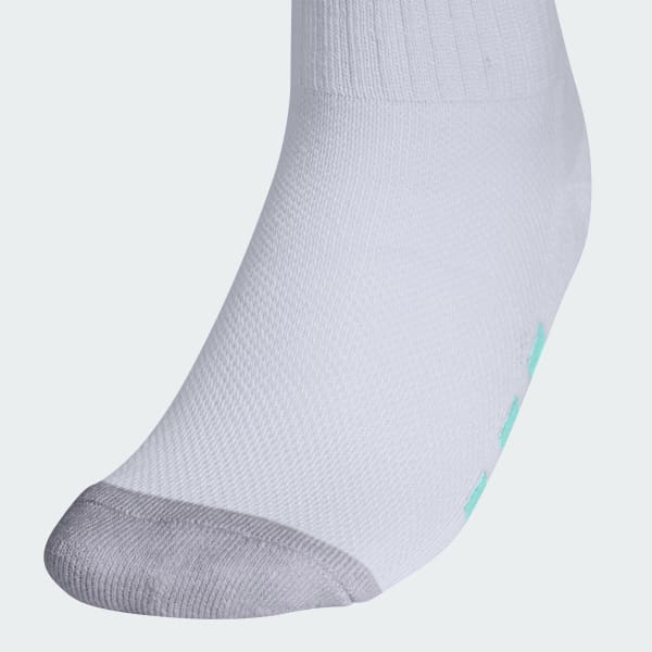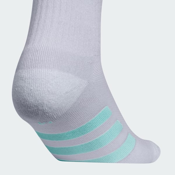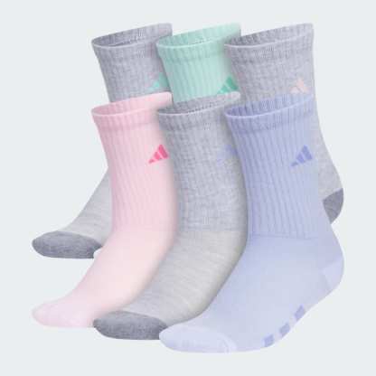 Working out to hanging out, they'll be comfortable nonstop when they're wearing these girls' adidas crew socks. Airy mesh helps keep their feel cool. Extra cushioning and extra-strong details in the heel and toe mean these socks will last longer.